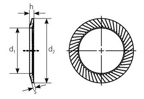 Die Original SCHNORR® Sicherungsscheibe hat die Form einer beidseitig gezahnten Tellerfeder mit trapezförmigem Querschnitt, deren Durchmesser auf die Schraubenmaße abgestimmt ist. Der Außendurchmesser gleicht dem Kopfdurchmesser von Zylinder- und Innensechskantschrauben.